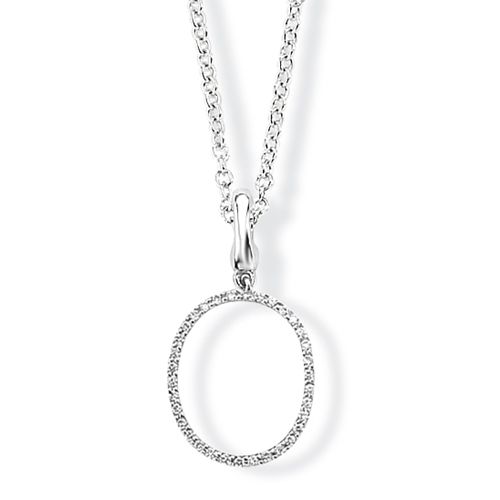 A diamond initial charm / pendant, in the form of the letter 'O', mounted in 9ct white gold, combined weight of diamonds 0.06-0.08 ct*, with hinged loop enabling interchangeable use as a pendant or bracelet charm, length excluding pendant loop 1.2 cm. 9ct white gold tracelink chain sold separately £195